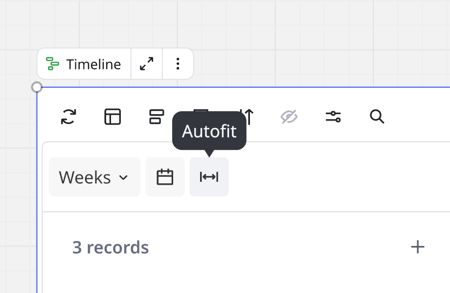 Puedes editar y ver tu cronograma en modo de enfoque (pantalla completa). Simplemente haz clic en el icono de flecha diagonal en la parte superior del widget. Configuraciones como Filtro, Ordenar, Agrupar y Ocultar campos se encuentran en la parte superior derecha.