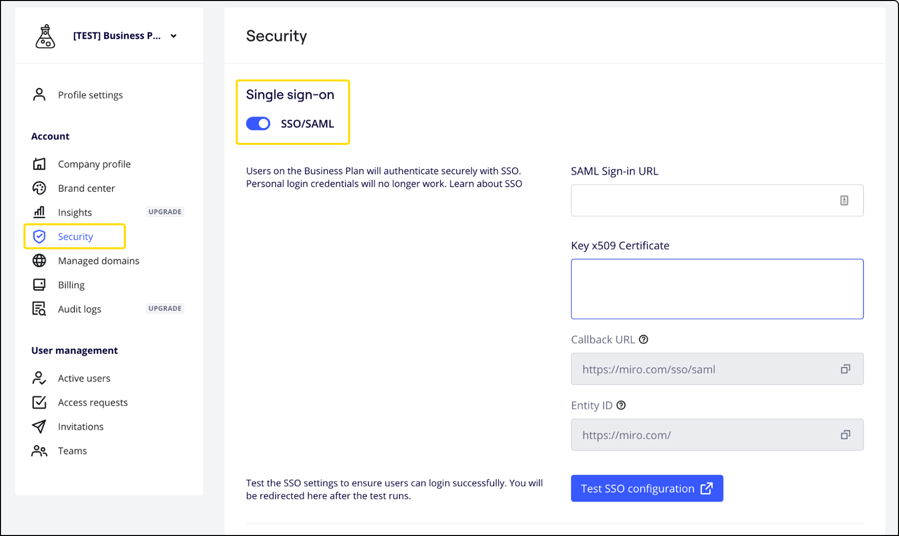 - Añadir el certificado renovado a tu configuración de SSO de Miro.