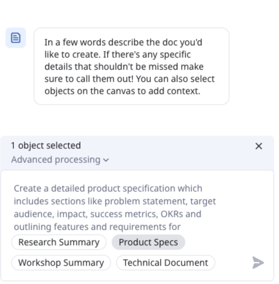 Utilisez Miro AI pour générer des documents, des diagrammes, des tableaux et plus encore.