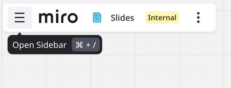 Sur votre tableau Miro, la barre de tableau inclut le menu hamburger Ouvrir la barre latérale.