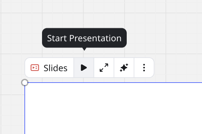 Les Diapositives de Miro incluent un menu contextuel qui vous permet de gérer votre présentation. Vous pouvez démarrer votre présentation, appliquer des styles et exporter votre diaporama sous forme de PDF.