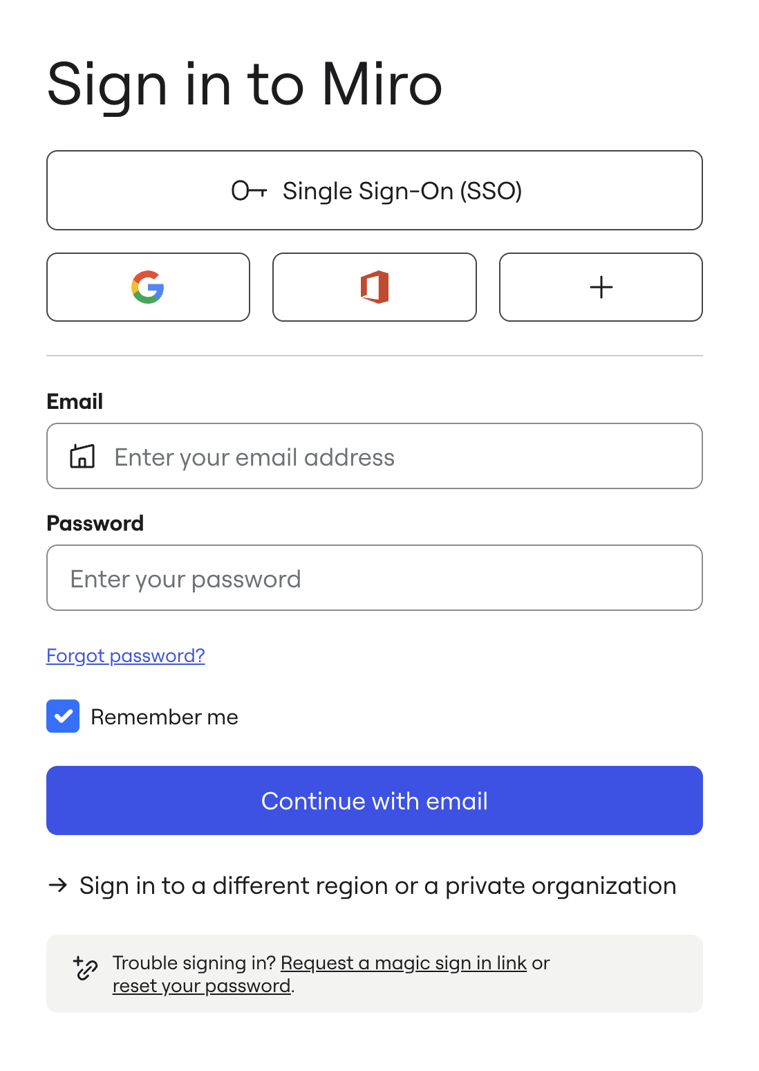 ✏️ Il n’est pas possible de changer votre mot de passe si vous accédez à Miro via authentification unique (SSO).