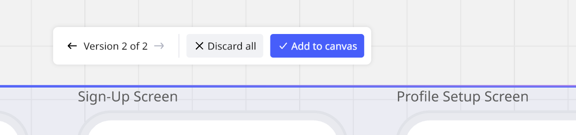 💡 いくつかのプロトタイプドラフトをキャンバスに適用しましょう。これにより、デザインの選択肢を比較し、最良のオプションをさらに改善できます。