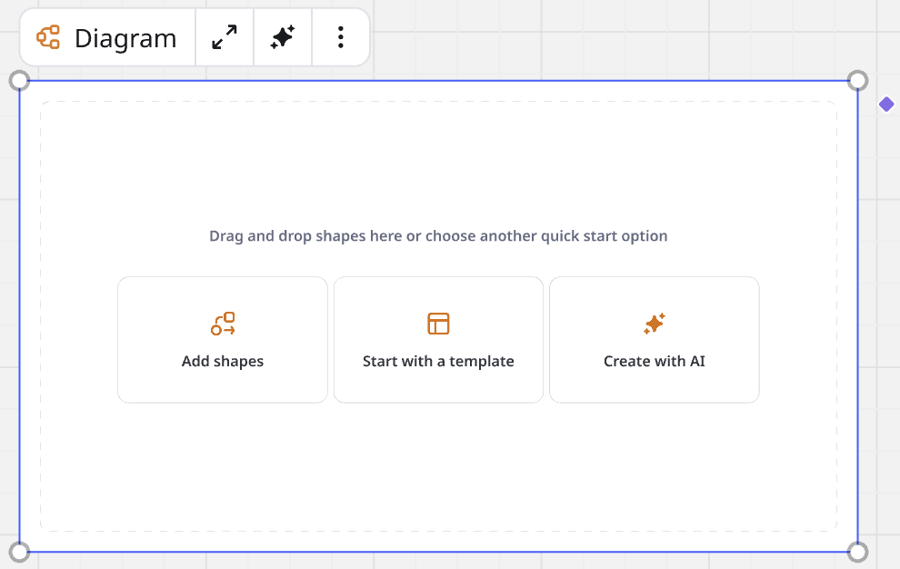 図やスライドのような一部のフォーマットでは、新しい空白のインスタンスをキャンバスに追加するときに、AI で作成をスタートオプションとして含めています。