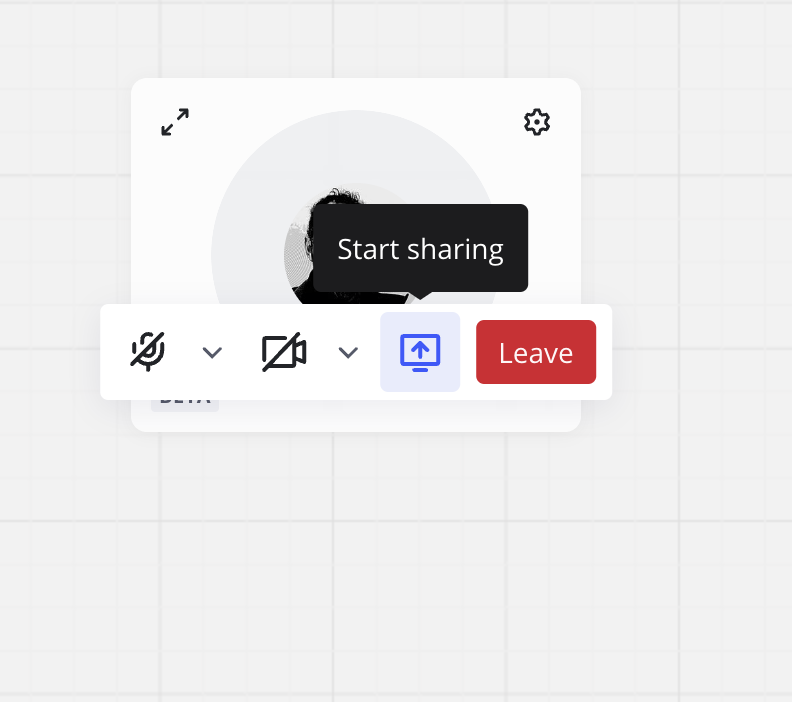 브라우저 모달 창이 열립니다.✏️ Firefox, Safari, 기타 크로미엄 기반이 아닌 브라우저에서는 통화 중에 캔버스에서의 작업을 녹화하려면 화면을 한 번 공유해야 합니다.
