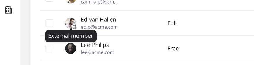 Klasyfikacja wewnętrzna lub zewnętrzna jest automatyczna i opiera się na tym, czy domena użytkownika jest roszczeniowa i zweryfikowana przez Twoje konto Enterprise.